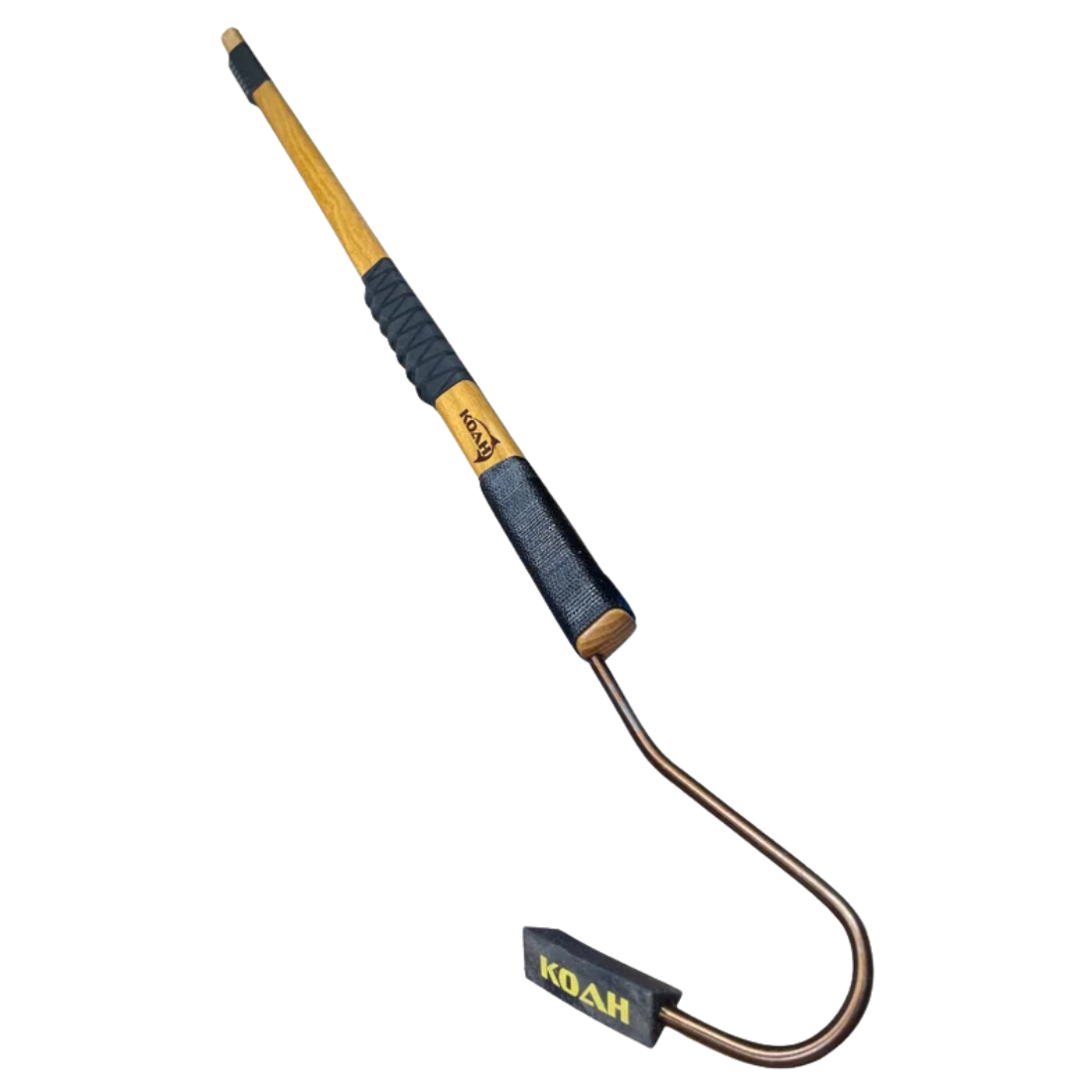 A step up from its little brother, the hand Crafted 48in Koah Mahogany Gaff is also a performer. Same 17-4ph heat treated gaff tip along with the studded and fiber reinforced neck, this gaff can take some punishment. It has two locations where we added additional rubberized grip over the finger cut outs to give you even more control and yes, if accidentily dropped it FLOATS.