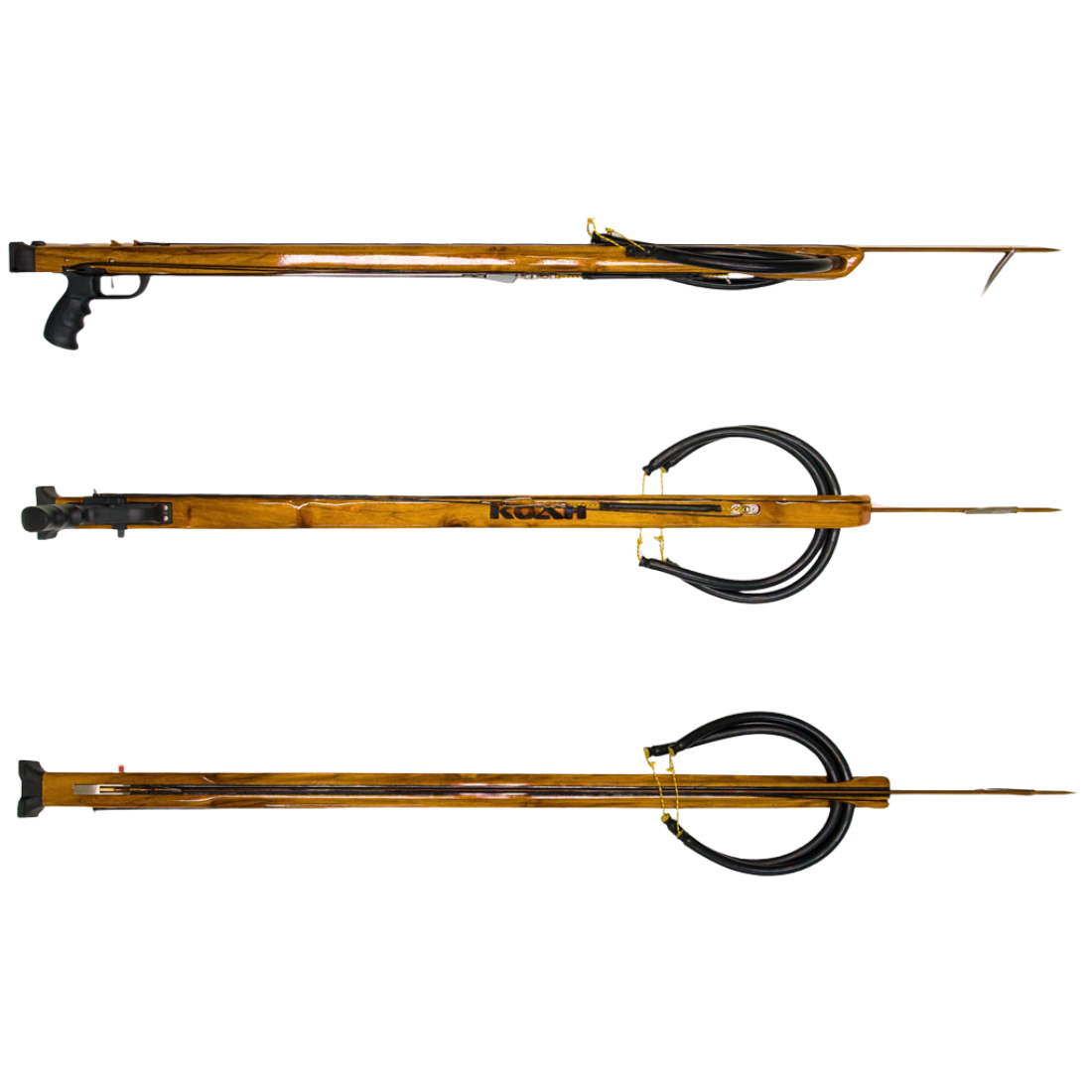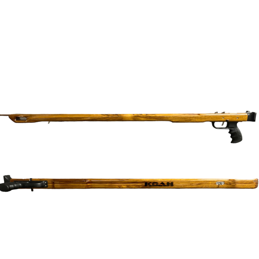 The KOAH Euro is complete and outfitted to take down anything in its reach. Slim, sleek, and weight ballasted this speargun is sure to set the bar in performance. Equipped with 9/32 poured enclosed track , two 5/8 bands, reverse trigger mechanism for an additional two inches of band stretch and an aggressive rake (angle) handle to even out the weight of having the entire stock in front of you. The muzzle and side channels were designed to pull the inner band close to the shaft, down the length of the speargun to create lateral band pull which greatly reduces recoil. Guns are measured from front of Trigger mechanism to tip of muzzle. Total stock (from gun butt to tip of muzzle) is as follows... 90cm has 44" stock, 100cm has 48" stock, 110cm has 52" stock, 120cm has 56" stock, 130cm has 60" stock and 140cm has 64" stock.